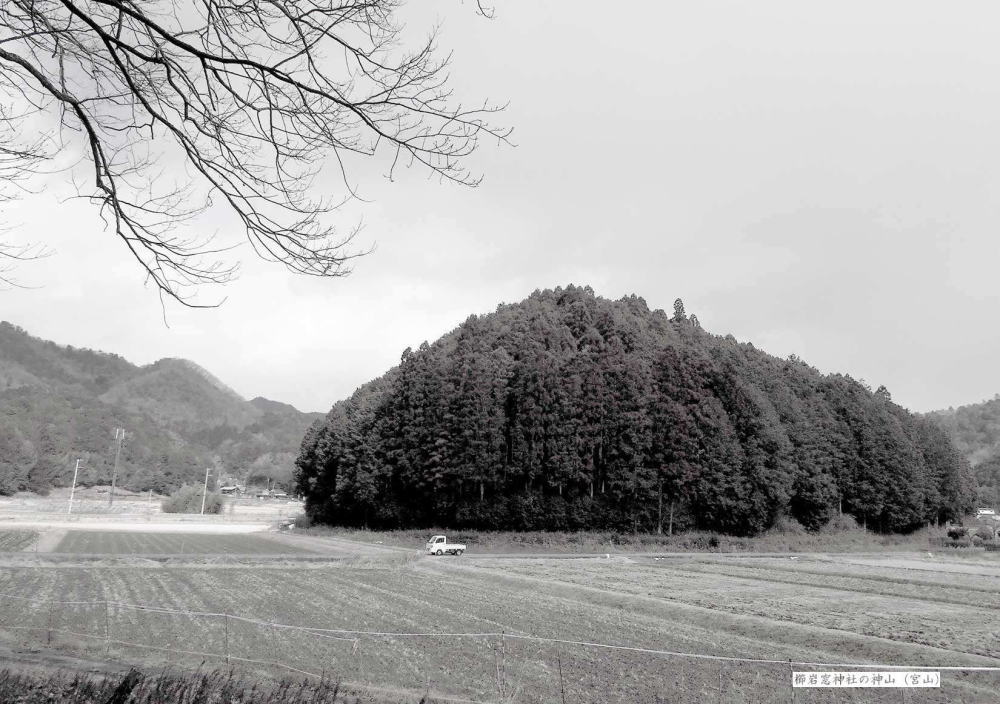 大芋の櫛石窓神社の宮山は今ほど紹介した道端の小丘でございます。宮山はご神体の宿る神山とされ、山頂に巨大な岩がゴロゴロ散らばり、ストーンサークル様の岩石の輪に巨大な石柱が2、3本、屹立すると言う者もおります。しかし禁忌からか今も昔も神山に登頂した者はいないようでございます。