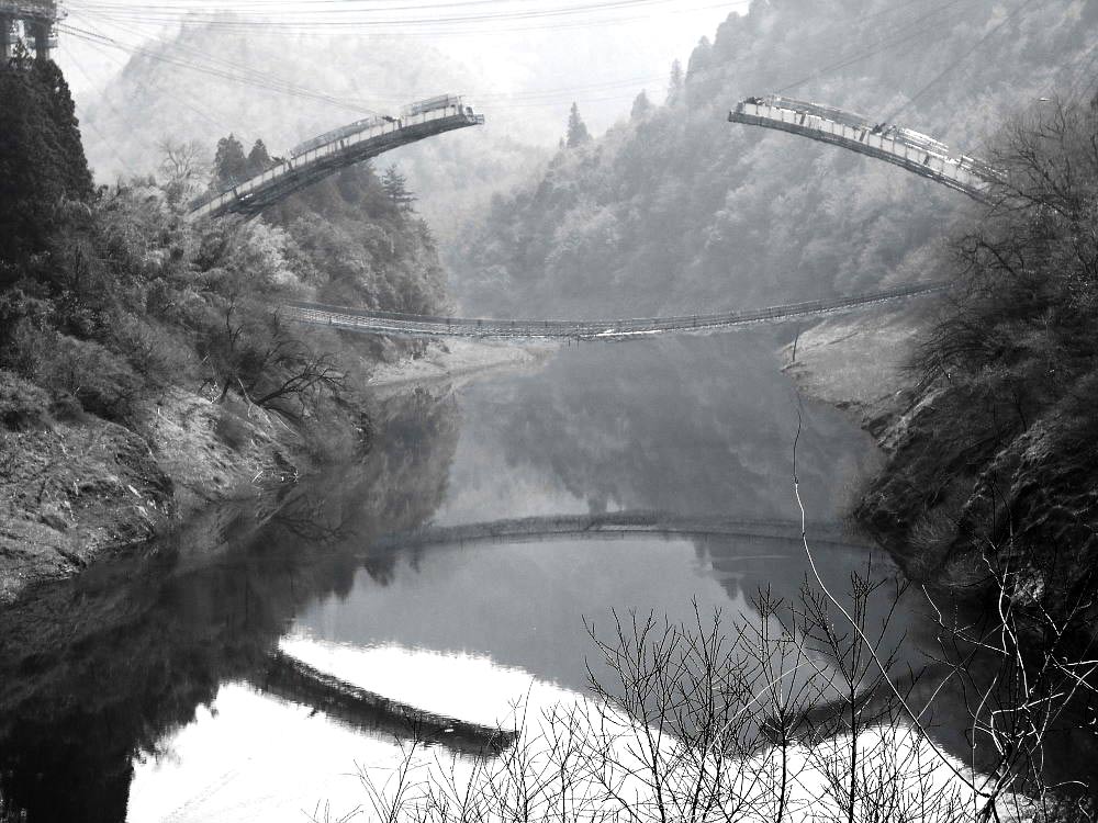 治安や防災上の観点から明治に至るまで由良川の本支流に橋が架けられることはなかった。渡渉は渡し舟か徒歩。