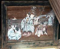 さて、伏見神社の祭神は神功皇后と淀姫命、竹内宿弥等五柱である。一ノ井堰の守り神として奉祀されたのだろう。拝殿に随分多くの絵馬(写真右)が奉納されている。毎年、7月14日に岩戸神楽(写真左)が演じられる。子どもの健康を授かる神事の側面もあって毎年、神楽見物に訪れる人も多い。