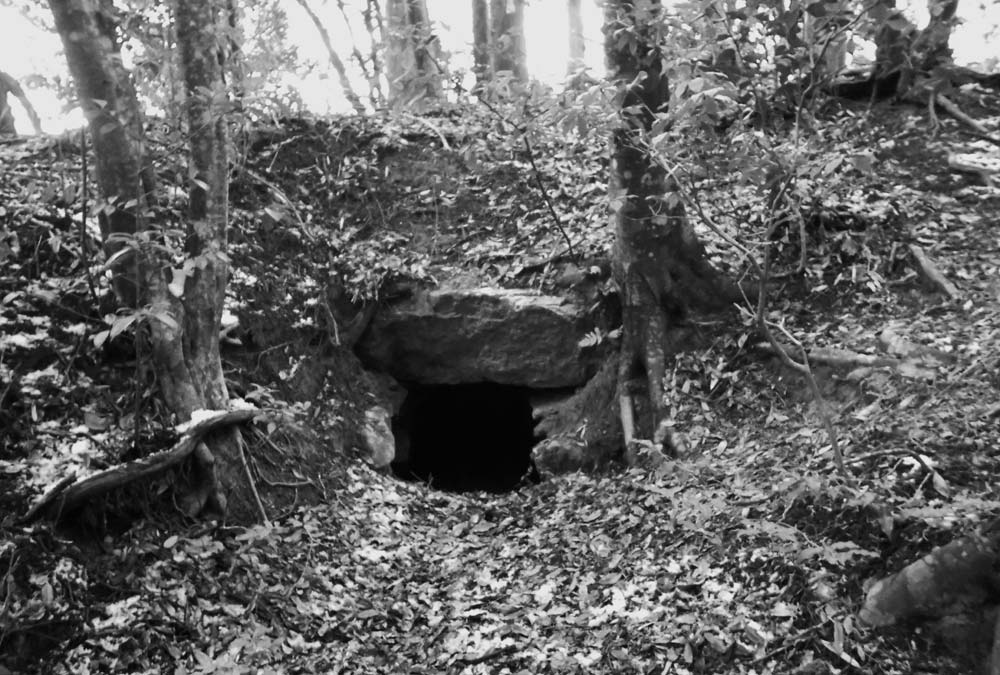 福井集落から1㌖ほど南の小田中集落の街中に稲荷山古墳(写真左)がございます。住宅地に接した尖った山頂に全長30㍍の前方後円墳を築き、後円部に横穴式石室が設けてございます。羨道の入口が露出しております。案内板から古墳の概要をみると石室の全長は6.35㍍、羨道と玄室がT字に交差し、羨道幅約1㍍に対し玄室幅3.66㍍(奥壁)となってございます。さらに高さ2㍍の玄室の構造を見ると、割石を6、7段に横積みし、持ち送りの技法によって上に行くほど割石を玄室の内側に寄せ、狭くなった上部の空間に石の架(蓋)を置き土が被せてあります。玄室はアーチ状の天井のように造られ、築造時期は6世紀ごろで朝鮮半島の影響を受けた古墳と説明されています。この古墳もまた雲部車塚古墳の被葬者が生きた時代に重なっております。