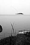 かなたに見える冠島はオオミズナギドリが生息する島。大宝元(701)年に大地震が記録(続日本紀)されており、冠島は大浦半島(舞鶴)の北端の高山が陥没してできた島だという。島に老人島神社が鎮座する。高山であったころも半島の先端部は海の向こうから幸が流れ着くところに変わりはない。今は神の島として崇められ、普段は人の上陸すら許されない島(行政区画は舞鶴市)だという。漁民の島への信仰はあつい。−平成24年5月− |