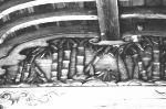 権次一統は兵庫県氷上郡柏原(現丹波市柏原)を本拠に、約300年間続いた彫刻師の家系。棟梁は子弟を伴って旅に明け暮れたことであろう。大きな寺社の創建や改築にかかわると彫刻に数年かかることもあるだろう。時には施主から家屋を与えられ、家族とも別れ別れの生活の中で腕を磨き、ひたすらケヤキやヒノキを削り彫り続けたことであろう。彩色し出来上がった彫刻を眺め仕事を終えると、一統は拝殿に一礼し、装束を整えノミや絵筆を携えて、天満宮前の長砂の坂を下ってゆく。そのような権次一統の後姿が見えるようである。−令和6年3月− |