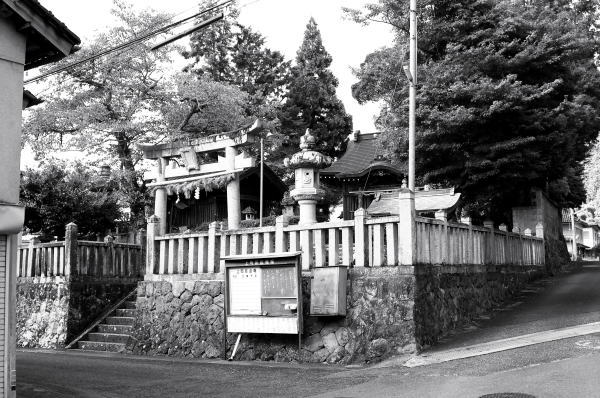 御神木は長さ3.6㍍、一辺12㌢の檜の角材。御先に榊と檜の枝を結わえ御幣がまわしてある。御旅所は崖上の平坦地にある。御神木は神輿に替わる御霊の乗物と考えられる。御旅所が難所にあってまた、氏地の巡行を思うと動きやすさも考慮し御神木のいわば神輿と考えられるがどうか。