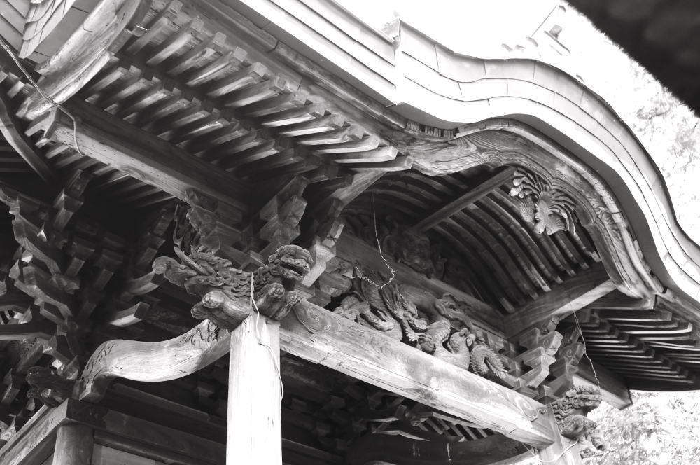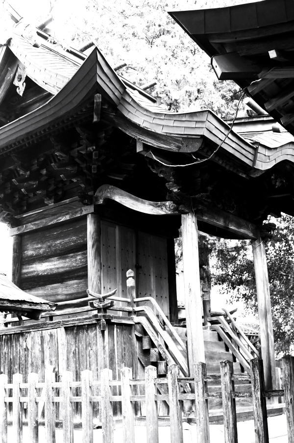 一宮神社の社殿をみると、本殿に比べ拝殿を大きく造り、海老虹梁(えびこうりょう)を使い本殿の身舎部を高く立派に見せ、軒回りの尾垂木の放列が美しい。一間社造り。