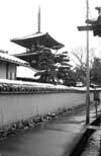 冬の日、雪中に建つ法輪寺塔の風景もまたよいものである。−平成20年2月− |