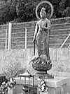 | 碑文の脇に魚霊塔が建ち、観音像が播磨灘を見守っておられる(写真左上)。魚族の水質への反応は敏感である。魚族は、高度成長期における海洋の環境悪化を、その身をもって私たちに教えたのである。瀬戸内海は、いまハマチやタイ、ヒラメなどの海の牧場となり養殖筏が浮かぶ海。いつまでも安全で美しい海であることを祈りたい。-平成16年11月- |