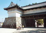 城門は一般に鯱の門といわれ、大棟の両端に鯱と鬼瓦を配し、続櫓の低い棟の西端に鬼瓦が配してある。高さは12メートルもあり雄大、重厚なものである。
