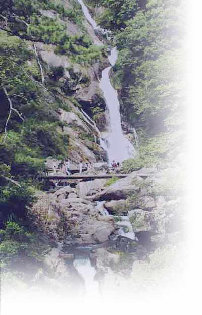 岩盤に刻まれた深い滝の流路は比較的狭く、白く泡立った滝水は滑るように落下し、滝壺の少し上ではじけた滝水は噴霧をともなって一気に滝壺に落ちてゆく。遠目にも大変姿のよい滝である。滝下の峡谷は、巨石が万状の奇観を呈し飽きることはない。渓谷の左岸に遊歩道があり、樹間にうつろう峡谷に親しむのもよいだろう。